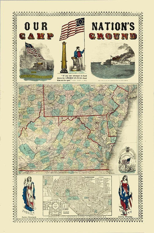 Pennsylvania, Virginia Campgrounds - Ensign White Modern Wood Framed Art Print with Double Matting by Ensign