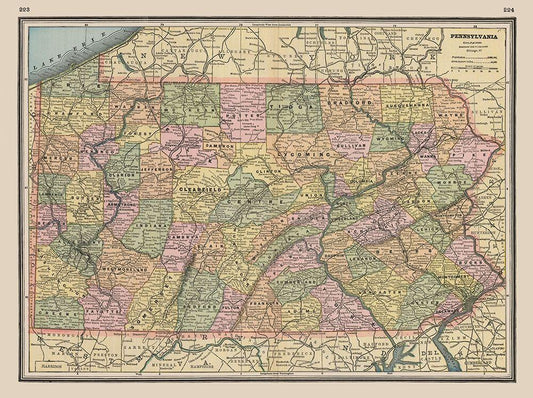 Pennsylvania - Johnson 1888 White Modern Wood Framed Art Print with Double Matting by Johnson