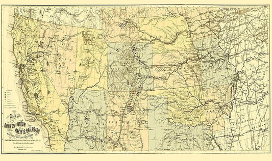 Union Pacific with Eastern Connections 1867 White Modern Wood Framed Art Print with Double Matting by Keeler
