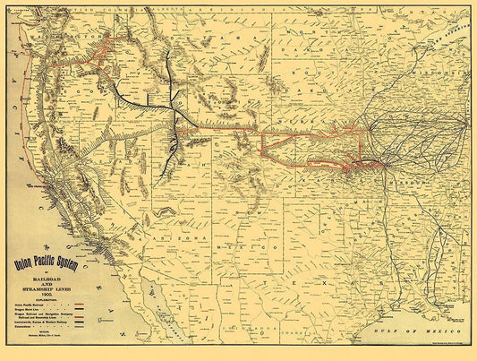 Union Pacific Railroad and Steamship Lines 1900 White Modern Wood Framed Art Print with Double Matting by Rand McNally