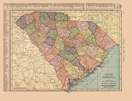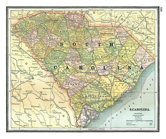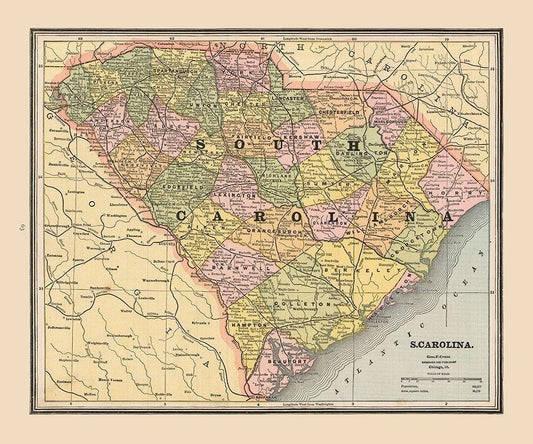 South Carolina, United States - Cram 1888 White Modern Wood Framed Art Print with Double Matting by Cram