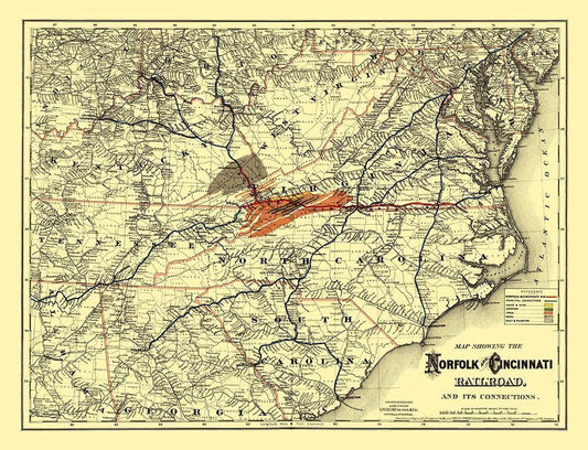 Norfolk and Cincinnati Railroad - Colton 1882 White Modern Wood Framed Art Print with Double Matting by Colton