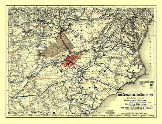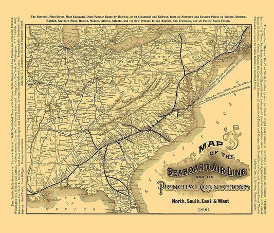 Seaboard Air Line Railroad - Rand McNally 1896 White Modern Wood Framed Art Print with Double Matting by Rand McNally