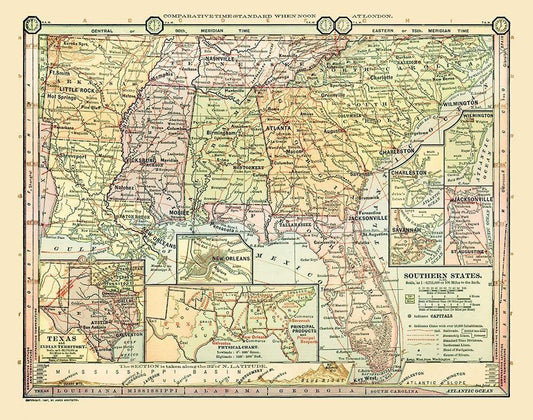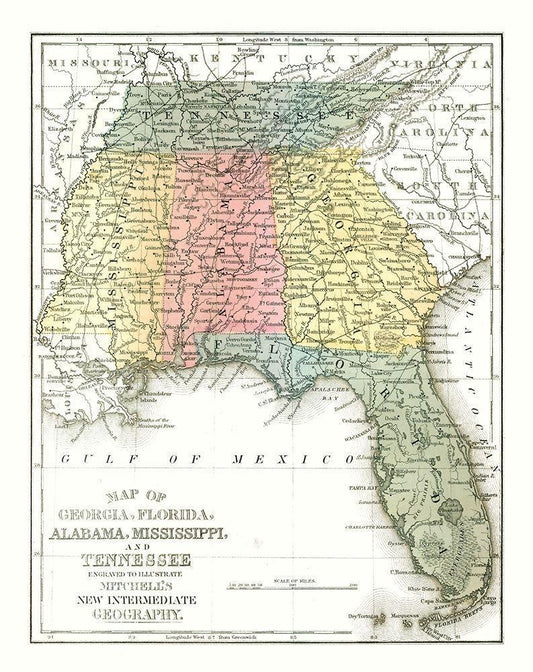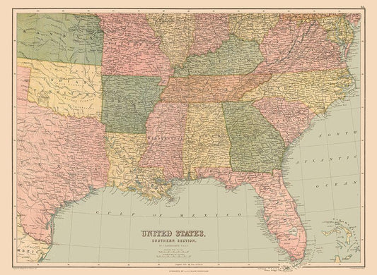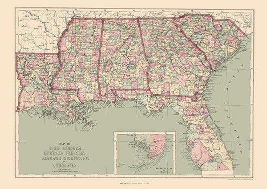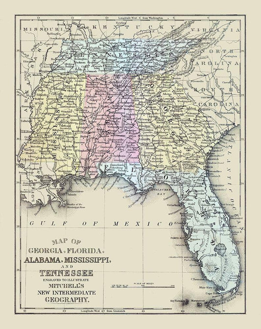 South Eastern United States - Mitchell 1877 White Modern Wood Framed Art Print with Double Matting by Mitchell