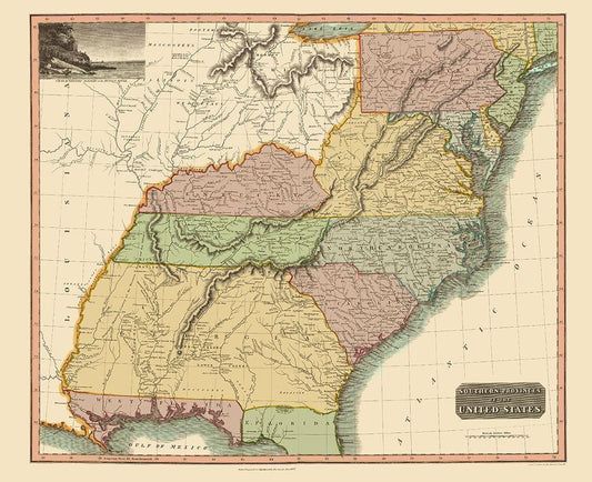 Southeastern United States - Thomson 1817 White Modern Wood Framed Art Print with Double Matting by Thomson