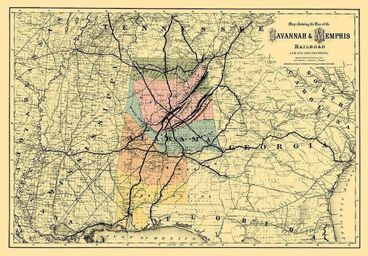 Savannah and Memphis Railroad - Colton 1872 White Modern Wood Framed Art Print with Double Matting by Colton