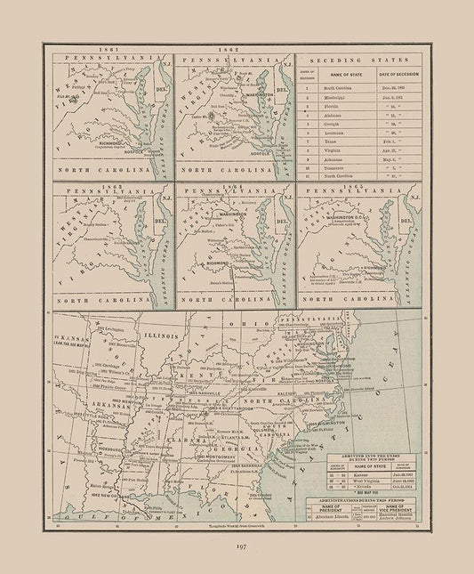 Seceding States 1860-1865 - Cram 1892 White Modern Wood Framed Art Print with Double Matting by Cram