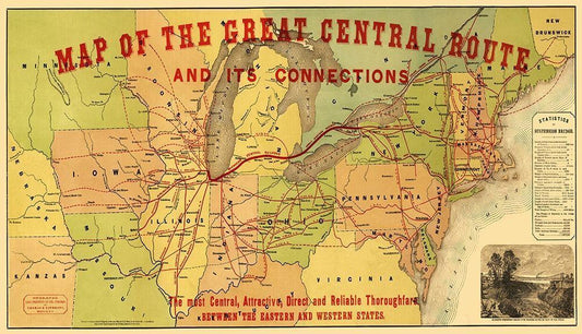 Great Central Railroad Route - Thomas 1856 White Modern Wood Framed Art Print with Double Matting by Thomas