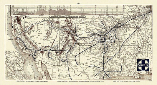 Santa Fe Railroad, Chicago to California 1904 White Modern Wood Framed Art Print with Double Matting by Poole