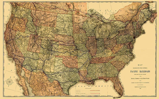 Pacific Railroads - Rand McNally 1883 White Modern Wood Framed Art Print with Double Matting by Rand McNally