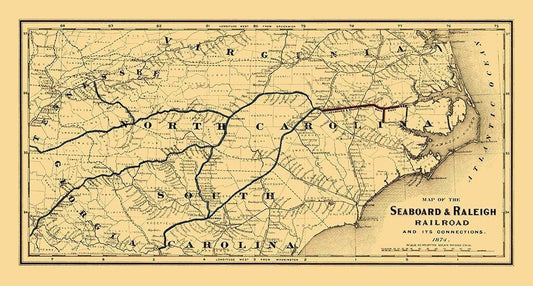 Seaboard and Raleigh Railroad - Colton 1874 White Modern Wood Framed Art Print with Double Matting by Colton