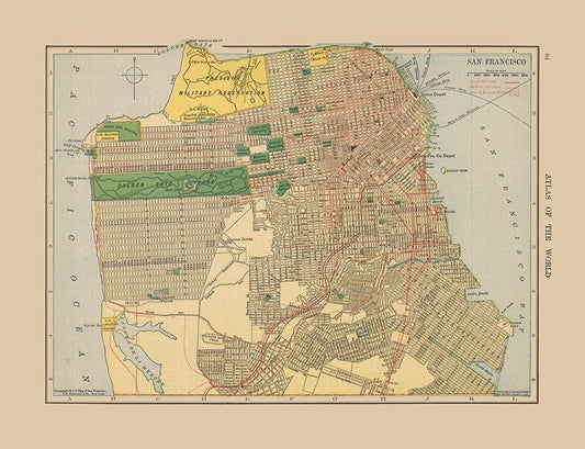 San Francisco California - Hammond 1910 White Modern Wood Framed Art Print with Double Matting by Hammond