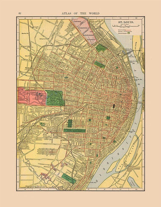 Saint Louis Missouri - Hammond 1910 White Modern Wood Framed Art Print with Double Matting by Hammond