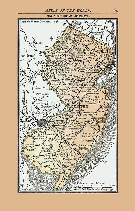 New Jersey - Johnson 1888 White Modern Wood Framed Art Print with Double Matting by Johnson