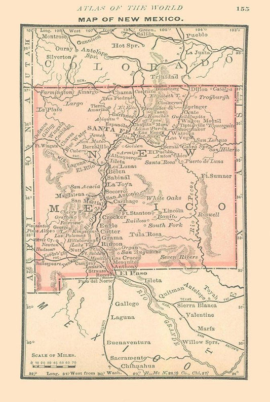New Mexico - Alden 1886 White Modern Wood Framed Art Print with Double Matting by Alden