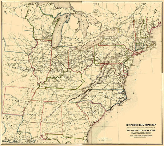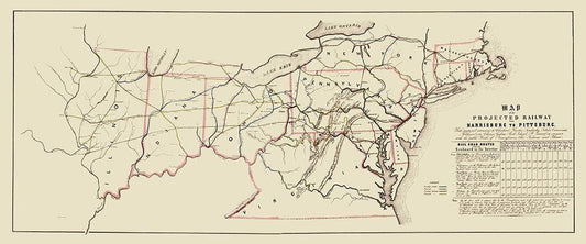 Harrisburg to Pittsburg Projected Railway - 1840 White Modern Wood Framed Art Print with Double Matting by Unknown