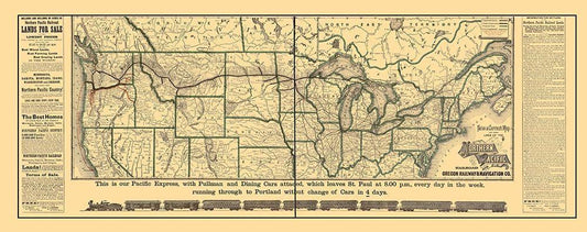 Northern Pacific Railroad - Rand McNally 1883 White Modern Wood Framed Art Print with Double Matting by Rand McNally