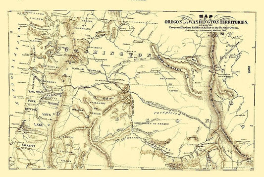Oregon and Washington Proposed Railroad Route 1855 White Modern Wood Framed Art Print with Double Matting by Disturnell