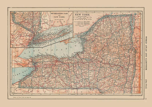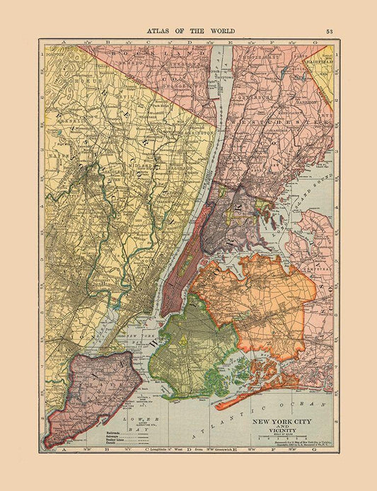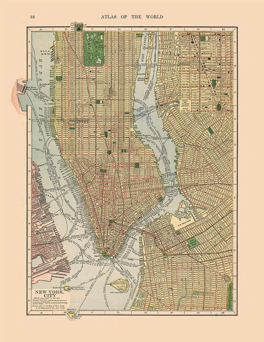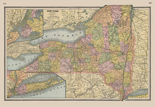New York - Johnson 1888 White Modern Wood Framed Art Print with Double Matting by Johnson