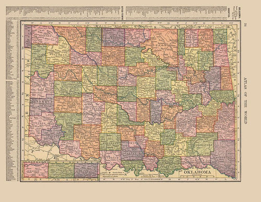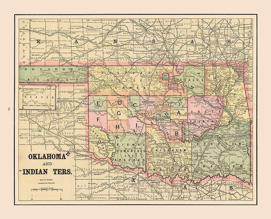 Oklahoma, Indian Territory - Cram 1892 White Modern Wood Framed Art Print with Double Matting by Cram