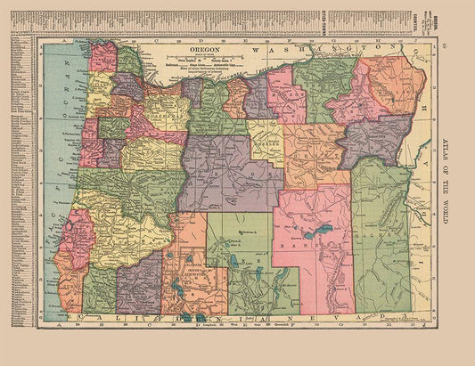 Oregon, Washington, Part of British Columbia - White Modern Wood Framed Art Print with Double Matting by Unknown