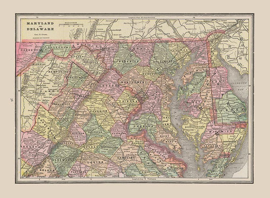 Maryland - Delaware - Cram 1892 White Modern Wood Framed Art Print with Double Matting by Cram