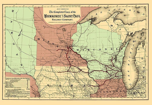 Milwaukee and Saint Paul Railway - Colton 1872 White Modern Wood Framed Art Print with Double Matting by Colton