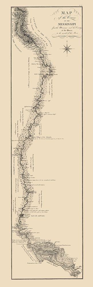 Mississippi River, Missouri River to Mouth 1796 White Modern Wood Framed Art Print with Double Matting by Collot