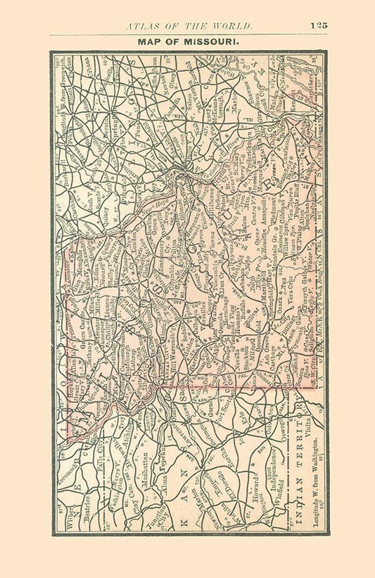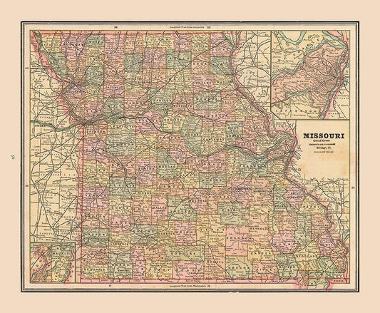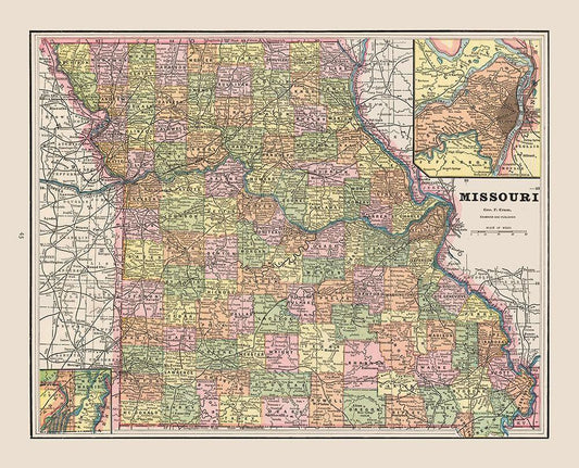 Missouri - Cram 1892 White Modern Wood Framed Art Print with Double Matting by Cram