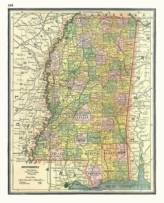 Mississippi - Johnson 1888 White Modern Wood Framed Art Print with Double Matting by Johnson