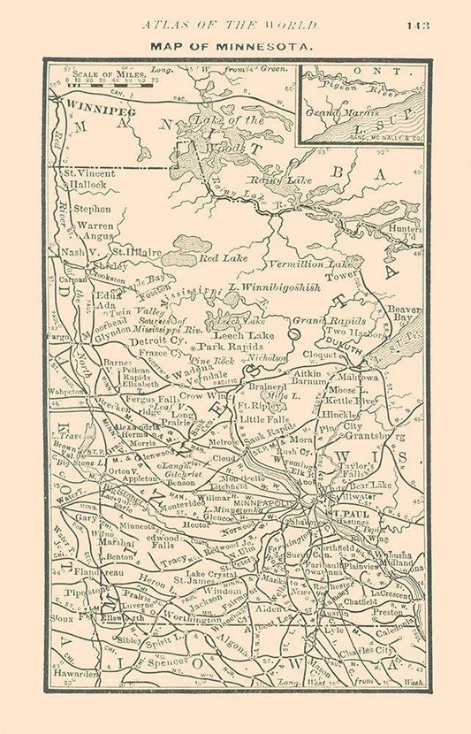 Minnesota - Alden 1886 White Modern Wood Framed Art Print with Double Matting by Alden