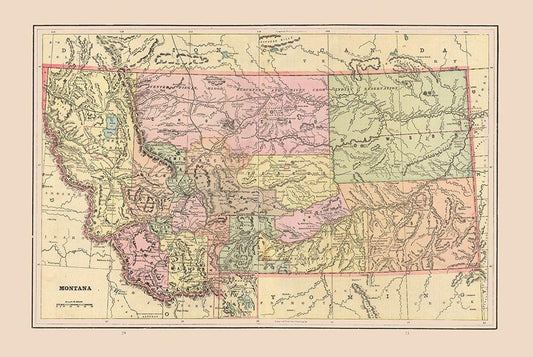 Montana - Cram 1892 White Modern Wood Framed Art Print with Double Matting by Cram