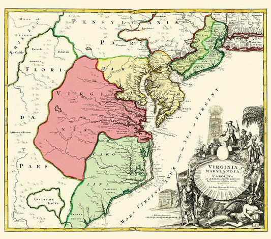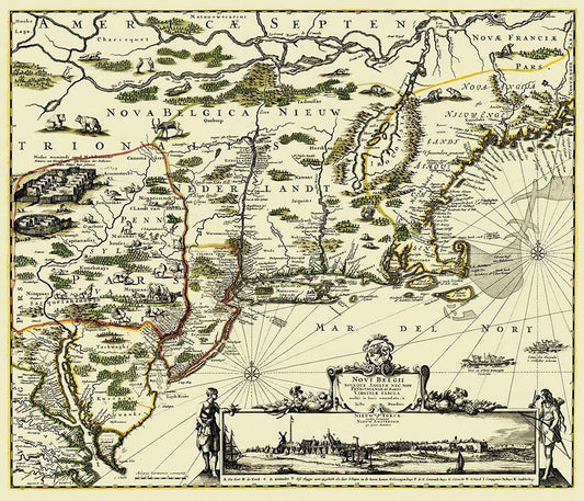 New England Original Colonies - 1673 White Modern Wood Framed Art Print with Double Matting by Unknown