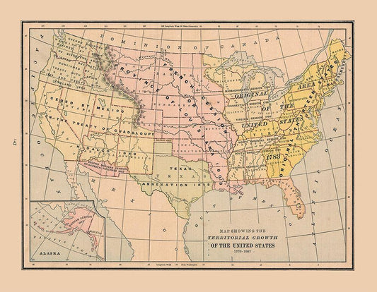 United States, Expansion- Cram 1888 White Modern Wood Framed Art Print with Double Matting by Cram