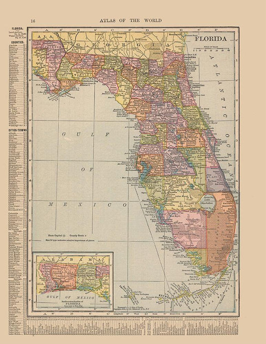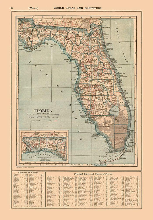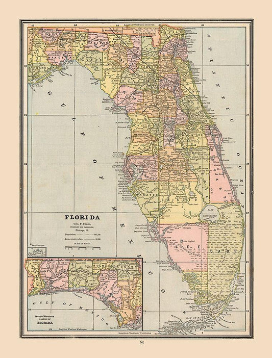 Florida, United States - Cram 1888 White Modern Wood Framed Art Print with Double Matting by Cram