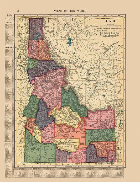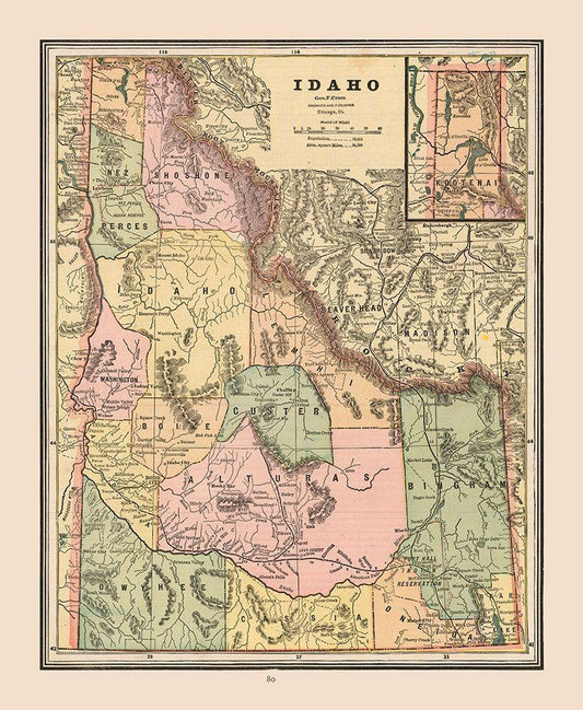 Idaho, United States - Cram 1888 White Modern Wood Framed Art Print with Double Matting by Cram