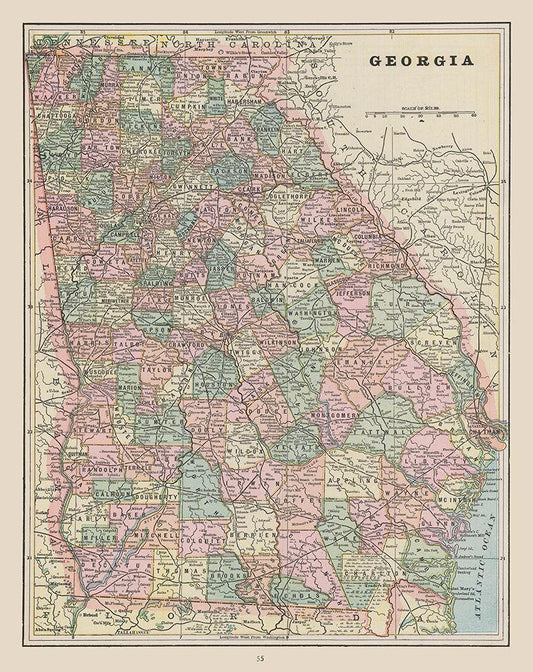 Georgia, United States - Cram 1888 White Modern Wood Framed Art Print with Double Matting by Cram