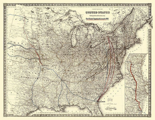 Fort Scott, topeka and Lincoln Railroad 1883 White Modern Wood Framed Art Print with Double Matting by Colton