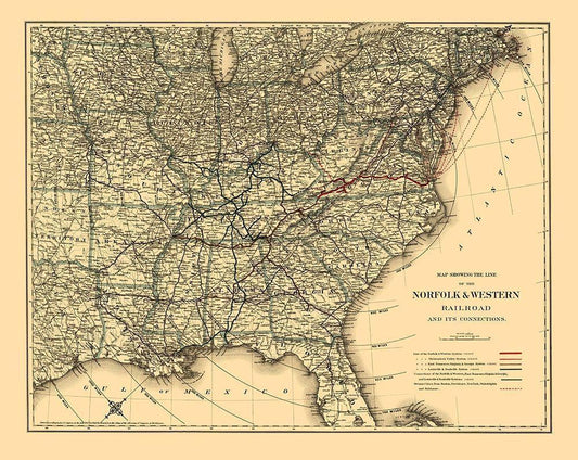Norfolk and Western Railroad - Colton 1887 White Modern Wood Framed Art Print with Double Matting by Colton