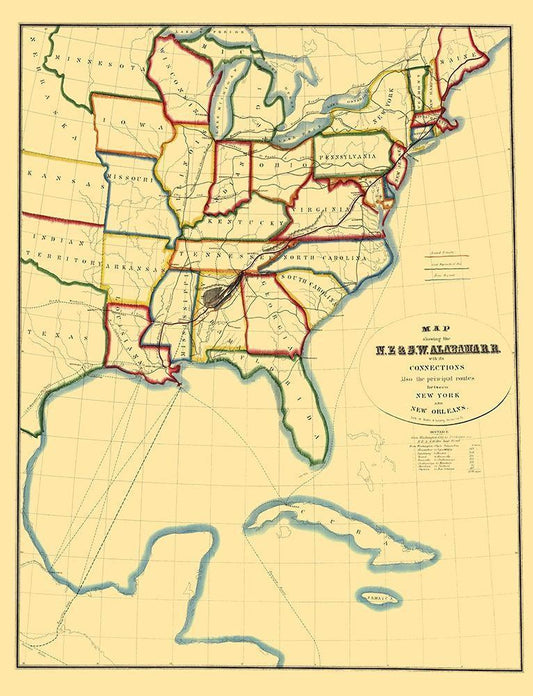 New Orleans, Mobile and Chattanooga Railroad 1865 White Modern Wood Framed Art Print with Double Matting by Colton