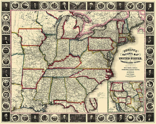 US East Phelps Travellers Guide 1852 White Modern Wood Framed Art Print with Double Matting by Ensign