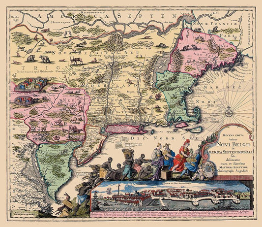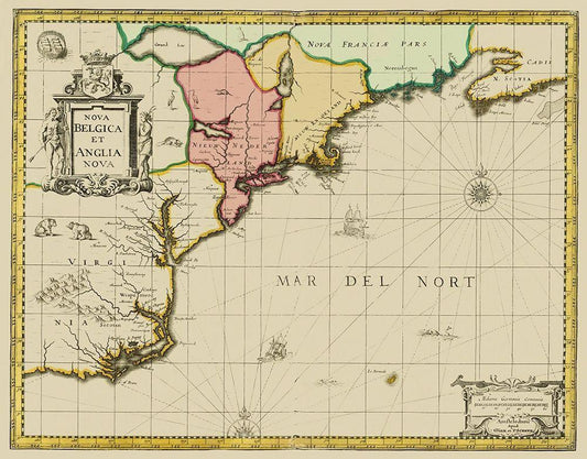 New England to Virginia, Nova Belgica - Valk 1636 White Modern Wood Framed Art Print with Double Matting by Valk