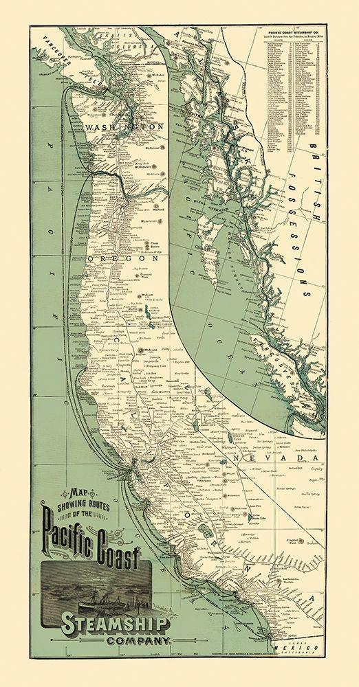 Pacific Coast Steamship Company Routes 1896 White Modern Wood Framed Art Print with Double Matting by Rand McNally