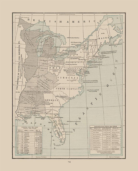 Eastern United States 1791-1845 - Cram 1892 White Modern Wood Framed Art Print with Double Matting by Cram