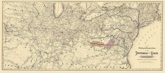Potomac and Ohio Railway Projected Route 1874 White Modern Wood Framed Art Print with Double Matting by Colton