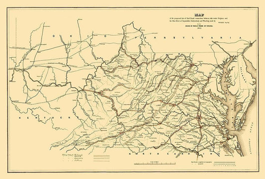 Tide Water Virginia to Ohio River Proposed 1852 White Modern Wood Framed Art Print with Double Matting by Vaisz