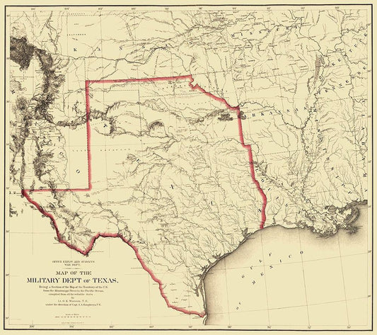 Texas, New Mexico - US War Dept 1857 White Modern Wood Framed Art Print with Double Matting by US War Dept