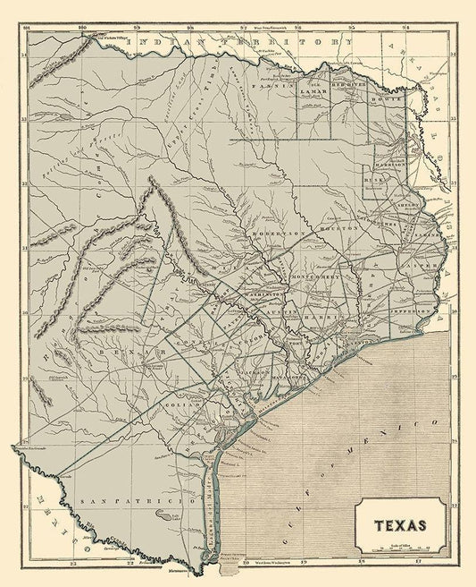 Texas, Eastern New Mexico - Dunnovant 1857 White Modern Wood Framed Art Print with Double Matting by Dunnovant