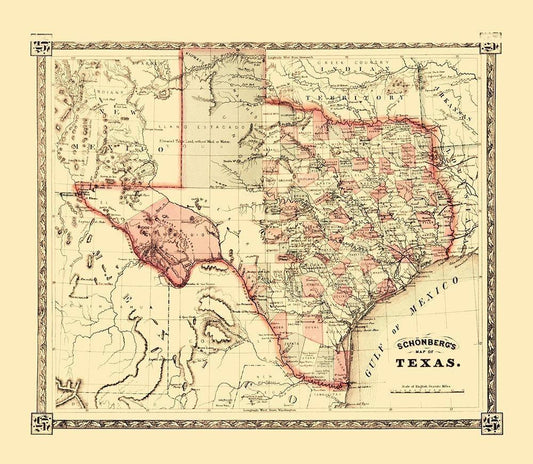 Texas - Schonberg 1867 White Modern Wood Framed Art Print with Double Matting by Schonberg