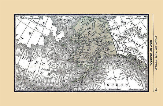 Alaska - Cram 1892 White Modern Wood Framed Art Print with Double Matting by Cram